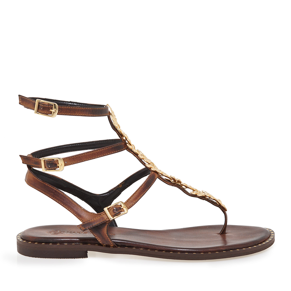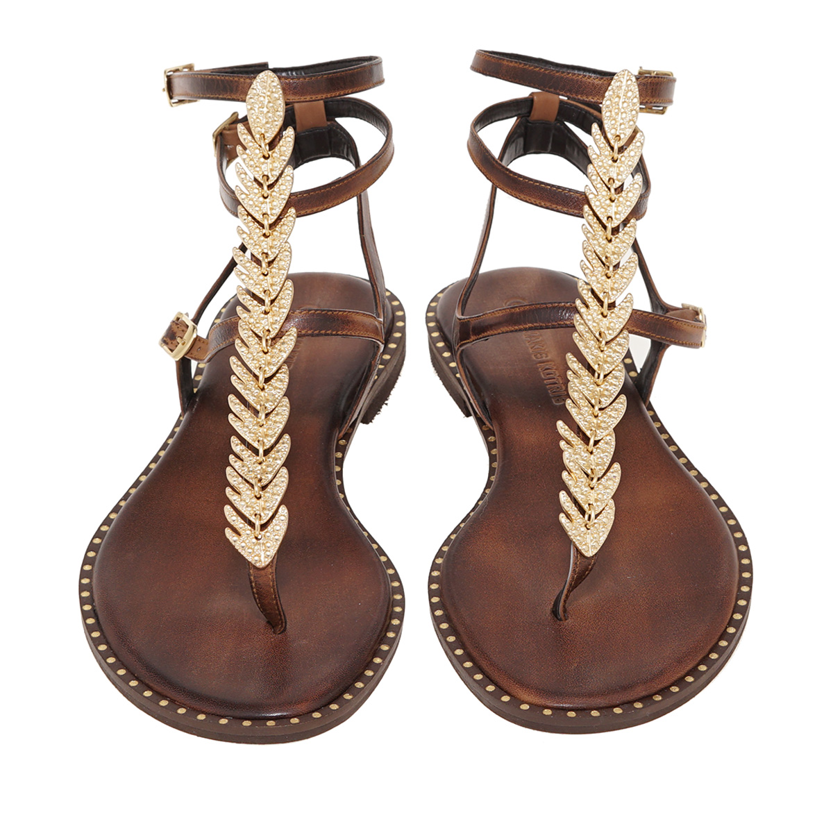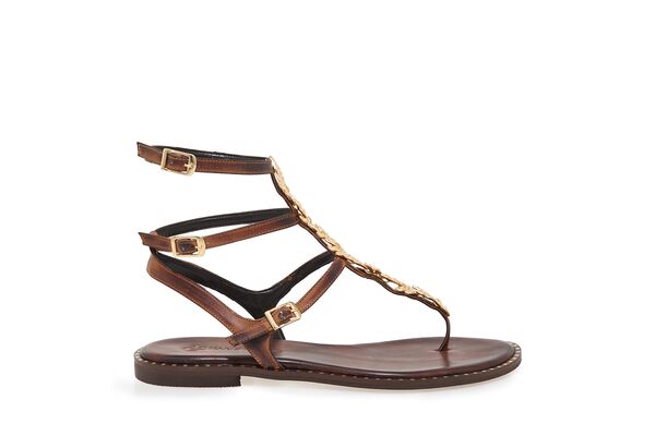 Γυναικείο Σανδάλι Δερμάτινο Σε Χρώμα Καφέ Χρυσό MAKIS KOTRIS k-072