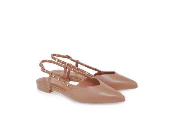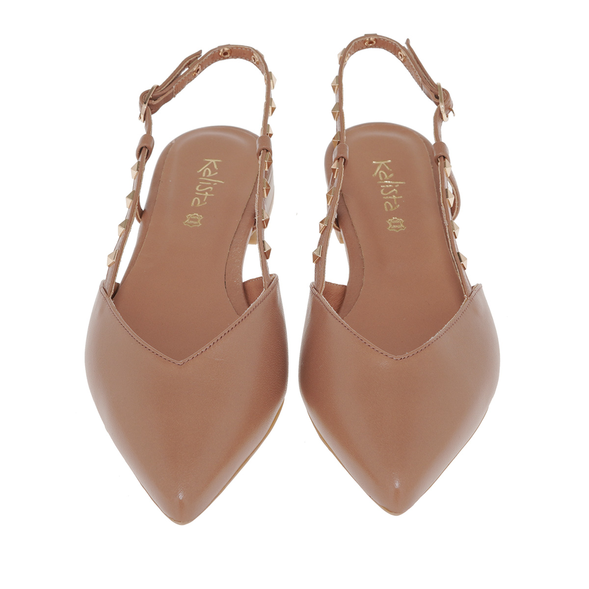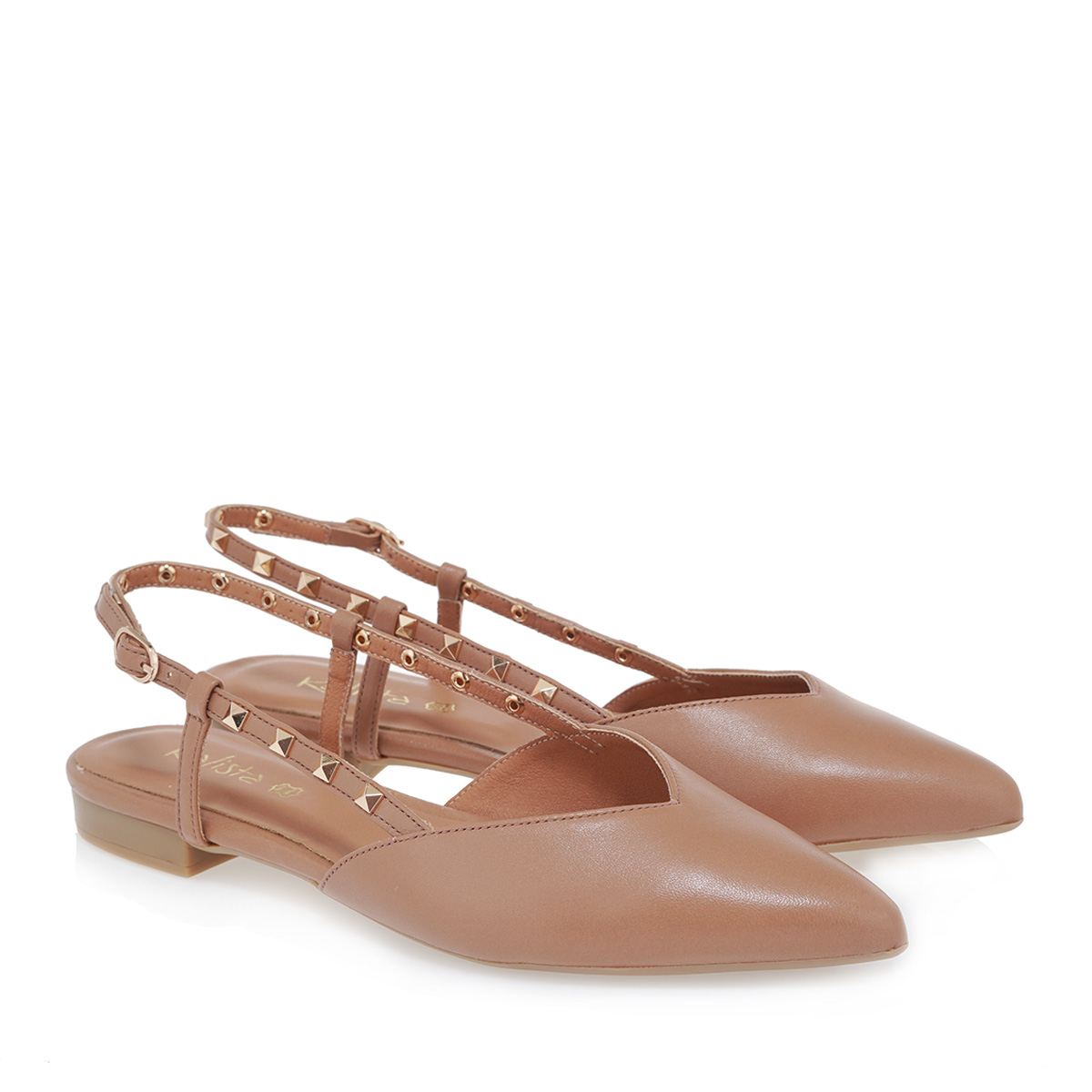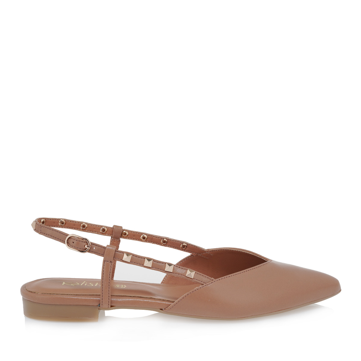 Γυναικείο Slingback Δερμάτινo Με Τρούκς Σε Χρώμα Μπεζ KALISTA 190892