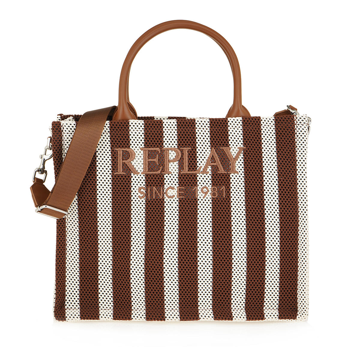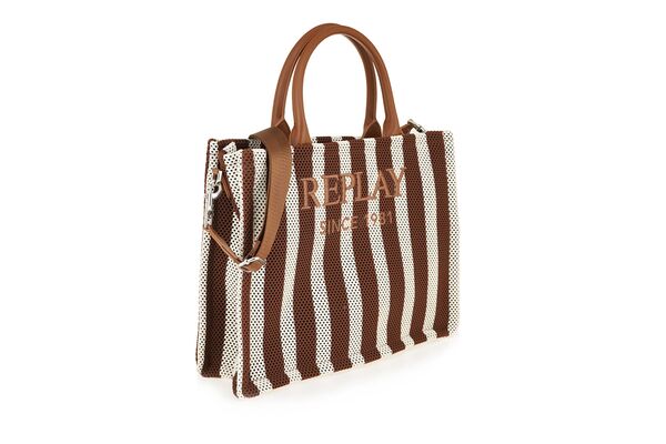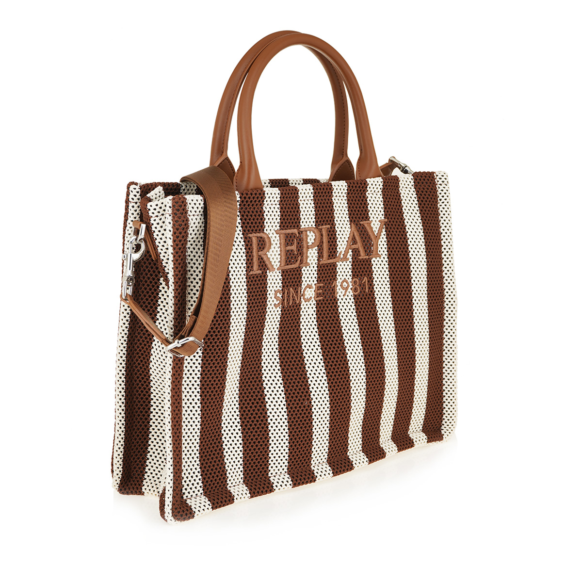 Γυναικεία Τσάντα Χειρός Σε Χρώμα Λευκό Καφέ Πλεκτό REPLAY FW3836000 A2020C X084